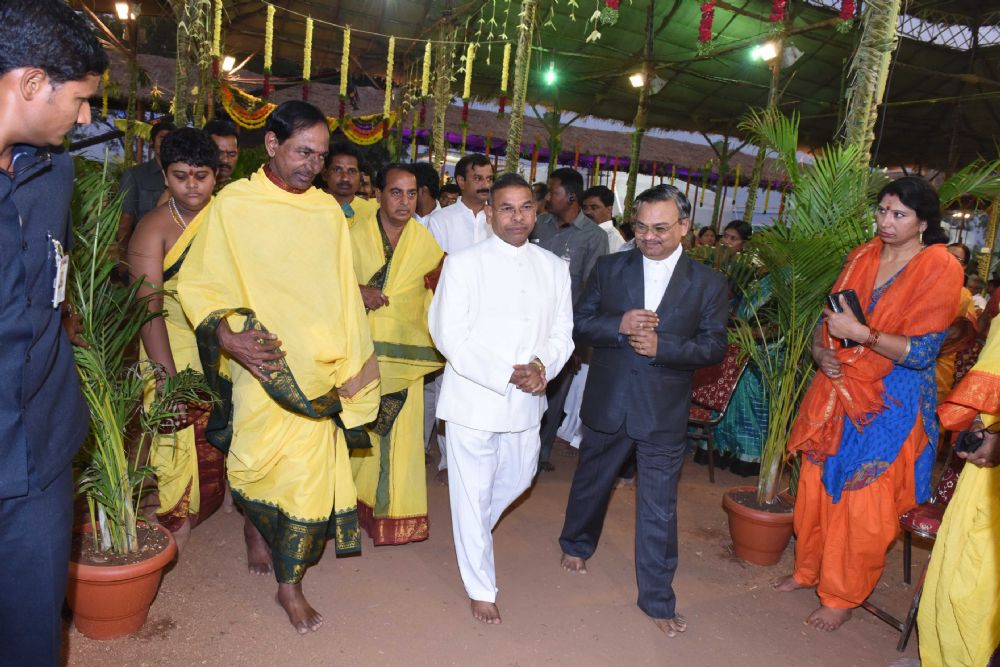 Chief Minister K. Chandrasekhar Rao and Union Ministers M. Venkaiah Naidu, Bandaru Datthathreya and others participated in Ayutha Chandi Yagam on Second Day at Yerravalli in Medak District.