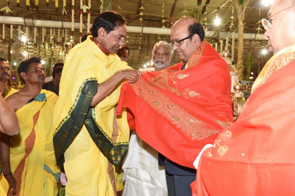 Chief Minister K. Chandrasekhar Rao and Union Ministers M. Venkaiah Naidu, Bandaru Datthathreya and others participated in Ayutha Chandi Yagam on Second Day at Yerravalli in Medak District.