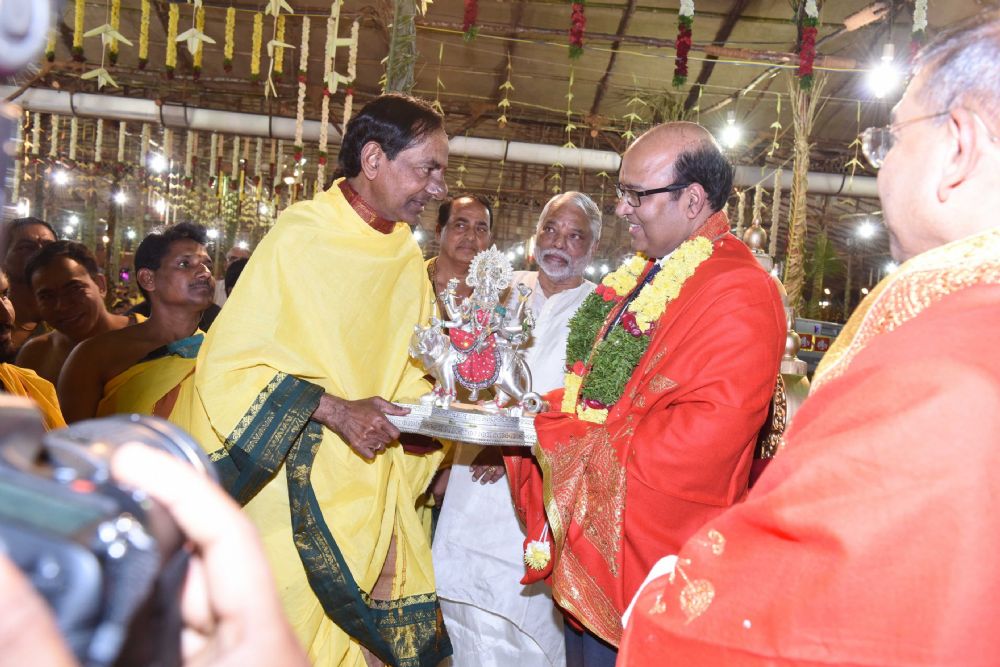 Chief Minister K. Chandrasekhar Rao and Union Ministers M. Venkaiah Naidu, Bandaru Datthathreya and others participated in Ayutha Chandi Yagam on Second Day at Yerravalli in Medak District.