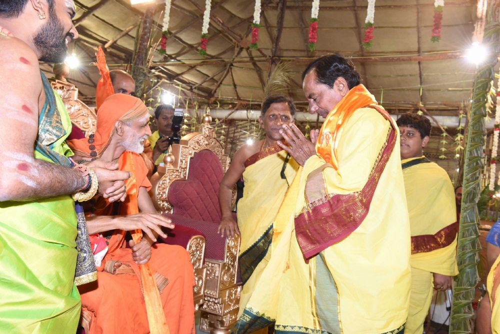 Chief Minister K. Chandrasekhar Rao and Union Ministers M. Venkaiah Naidu, Bandaru Datthathreya and others participated in Ayutha Chandi Yagam on Second Day at Yerravalli in Medak District.