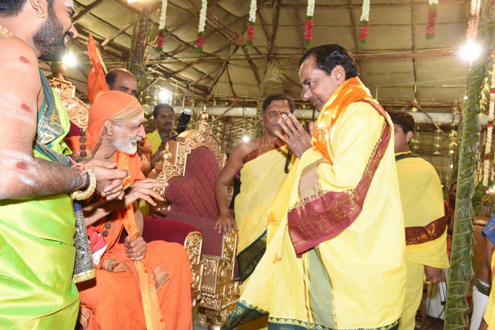 Chief Minister K. Chandrasekhar Rao and Union Ministers M. Venkaiah Naidu, Bandaru Datthathreya and others participated in Ayutha Chandi Yagam on Second Day at Yerravalli in Medak District.