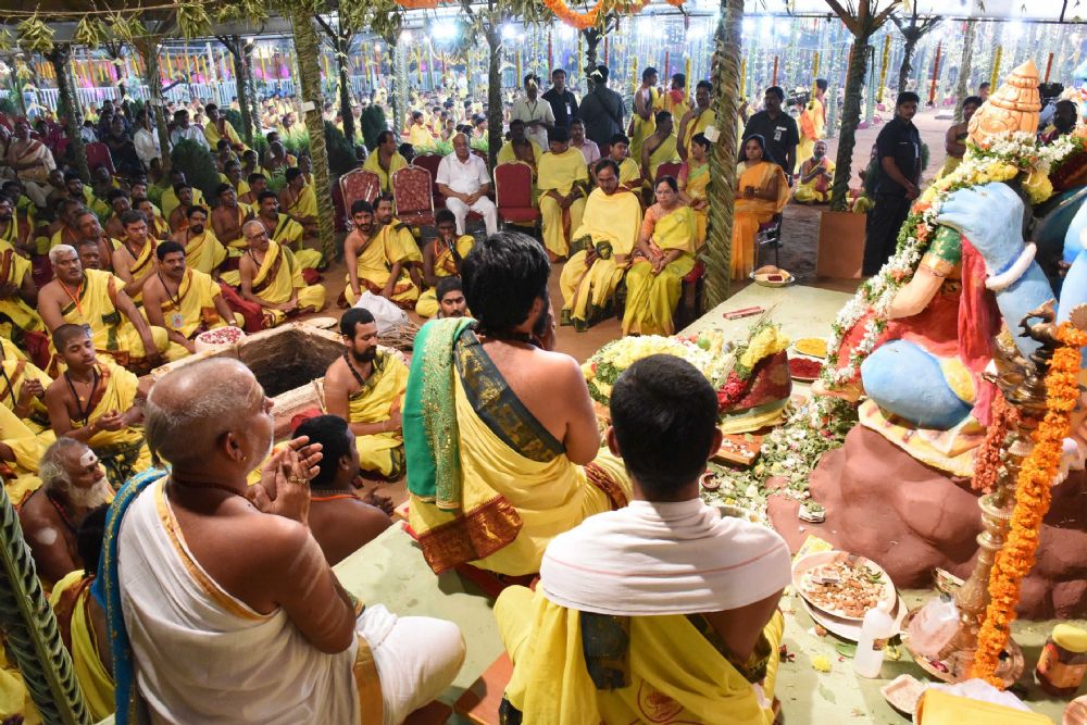 Chief Minister K. Chandrasekhar Rao and Union Ministers M. Venkaiah Naidu, Bandaru Datthathreya and others participated in Ayutha Chandi Yagam on Second Day at Yerravalli in Medak District.