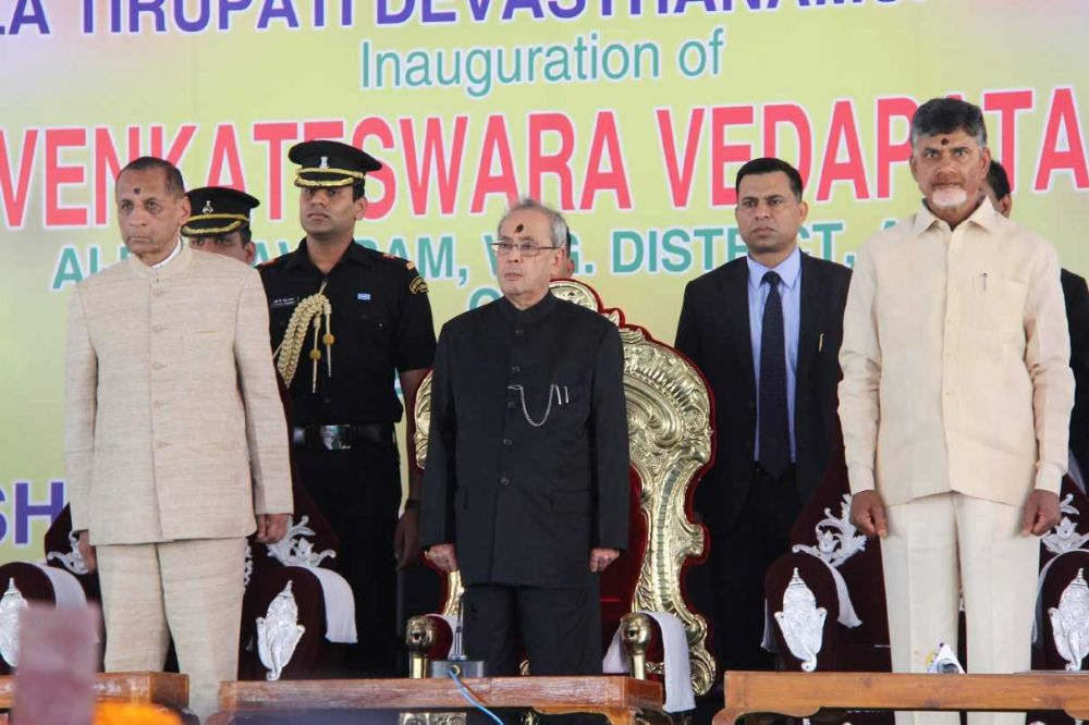 President of India Pranab Mukherjee inaugurated a Vedapathashala of Tirumala Tirupati Devasthanam at Ai-Bhimavaram of Andhra Pradesh on Friday.