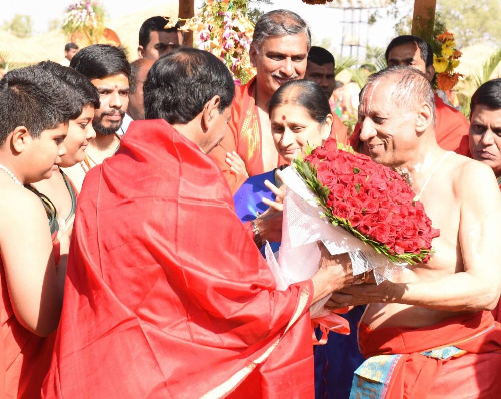 Telangana and AP Governor ESL Narasimhan, Tamil Nadu Governor K. Rosaiah, NCP supremo Sharad Pawar and several other personalities on Saturday attended the ongoing 'Ayutha Chandi Maha Yagam'.