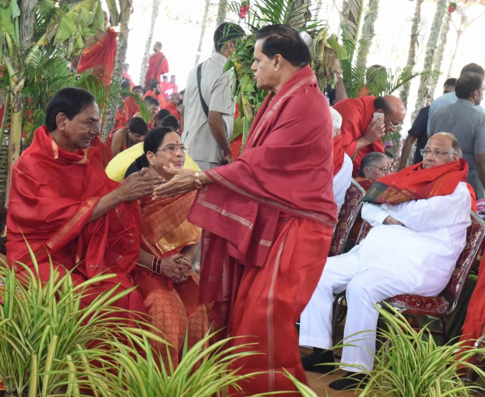Telangana and AP Governor ESL Narasimhan, Tamil Nadu Governor K. Rosaiah, NCP supremo Sharad Pawar and several other personalities on Saturday attended the ongoing 'Ayutha Chandi Maha Yagam'.