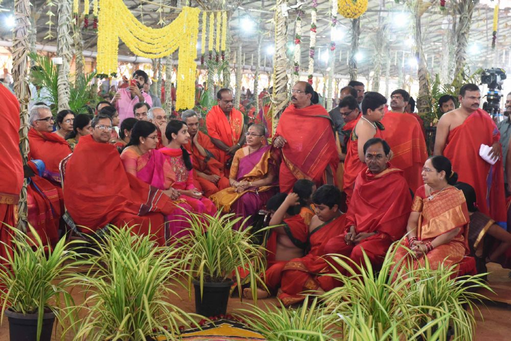 Telangana and AP Governor ESL Narasimhan, Tamil Nadu Governor K. Rosaiah, NCP supremo Sharad Pawar and several other personalities on Saturday attended the ongoing 'Ayutha Chandi Maha Yagam'.