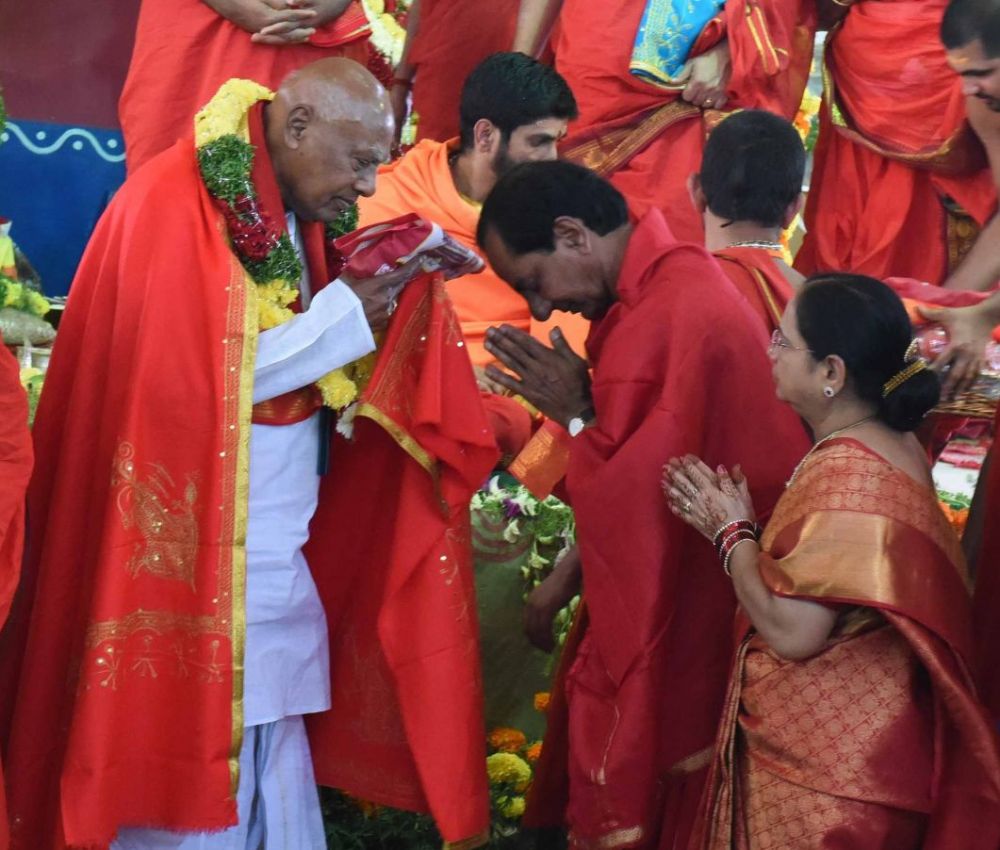 Telangana and AP Governor ESL Narasimhan, Tamil Nadu Governor K. Rosaiah, NCP supremo Sharad Pawar and several other personalities on Saturday attended the ongoing 'Ayutha Chandi Maha Yagam'.