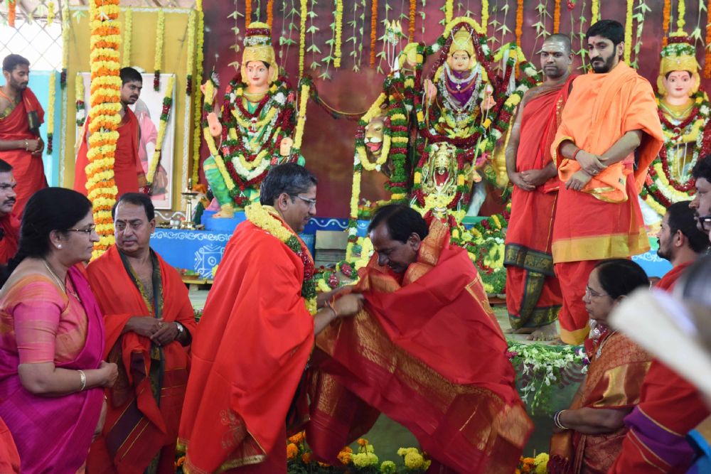 Telangana and AP Governor ESL Narasimhan, Tamil Nadu Governor K. Rosaiah, NCP supremo Sharad Pawar and several other personalities on Saturday attended the ongoing 'Ayutha Chandi Maha Yagam'.