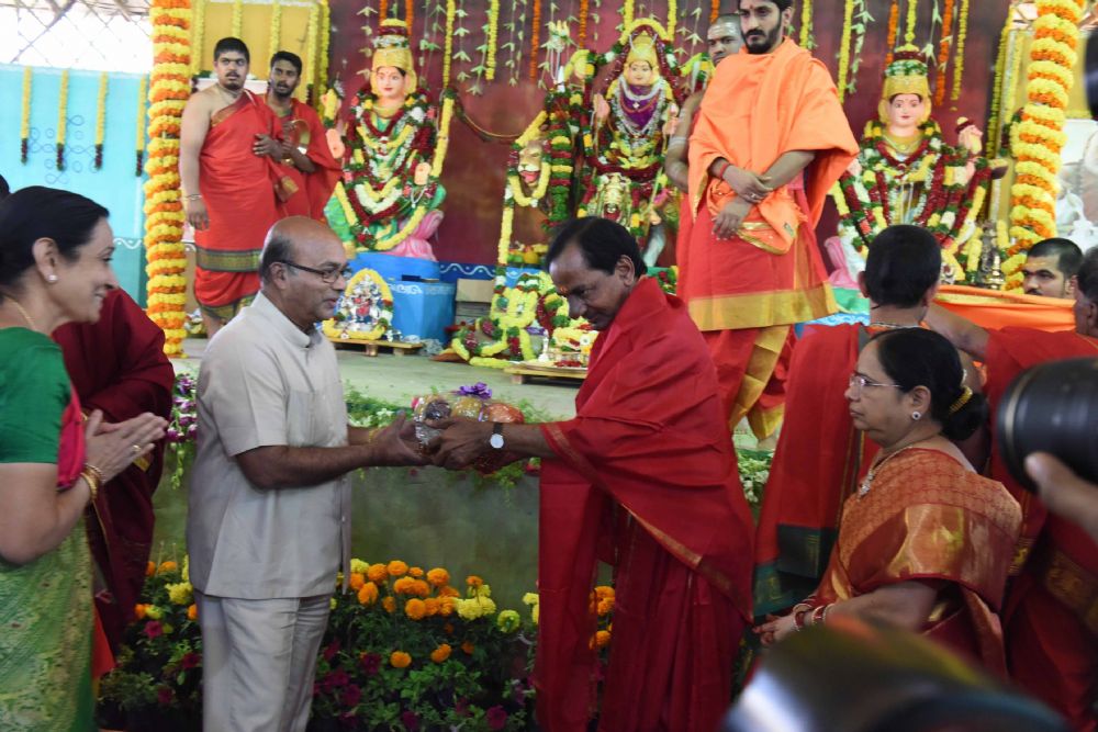 Telangana and AP Governor ESL Narasimhan, Tamil Nadu Governor K. Rosaiah, NCP supremo Sharad Pawar and several other personalities on Saturday attended the ongoing 'Ayutha Chandi Maha Yagam'.