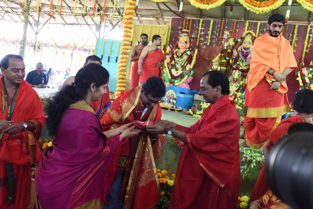 Telangana and AP Governor ESL Narasimhan, Tamil Nadu Governor K. Rosaiah, NCP supremo Sharad Pawar and several other personalities on Saturday attended the ongoing 'Ayutha Chandi Maha Yagam'.