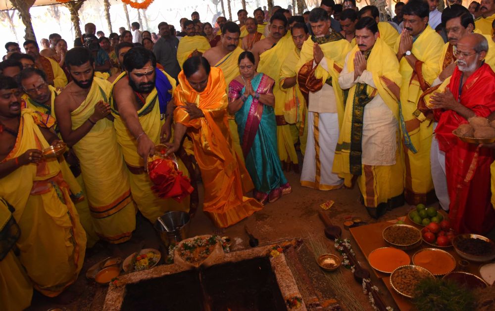 Andhra Pradesh chief minister Nara Chandrababu Naidu along with his ministers and several other prominent persons today attended the 'Ayutha Maha Chandi Yagam' performed by Telangana Chief Minister K Chandrasekhar Rao.