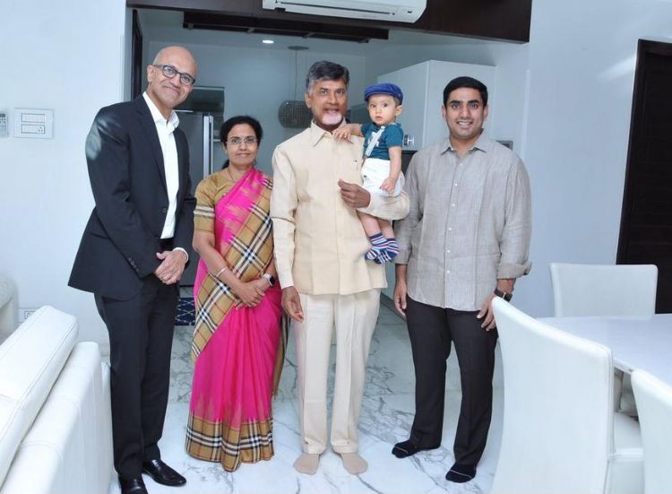 Andhra Pradesh chief minister Nara Chandrababu and his family met the Microsoft CEO during their breakfast meeting in Hyderabad on 28th December 2015.