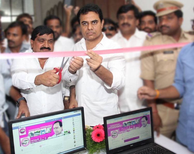 Telangana Ministers K.Tarakarama Rao and Mahender Reddy formally launched the TRS Party Online Campaign Booth at Telangana Bhavan on Thursday.