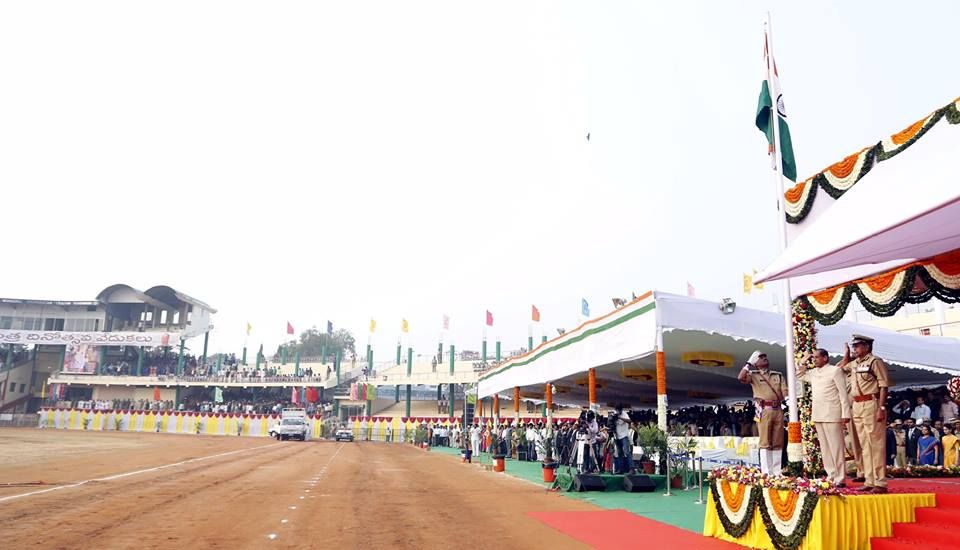 Chief Minister N. Chandrababu Naidu. Governor ESL Narasimhan and other officials participated in Republic Day Celebrations held in Vijayawada on 26th January 2016.