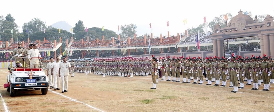Chief Minister N. Chandrababu Naidu. Governor ESL Narasimhan and other officials participated in Republic Day Celebrations held in Vijayawada on 26th January 2016.