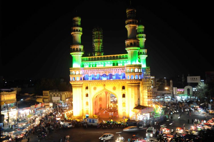 Charminar lit up in dazzling lights on the eve of Republic day
