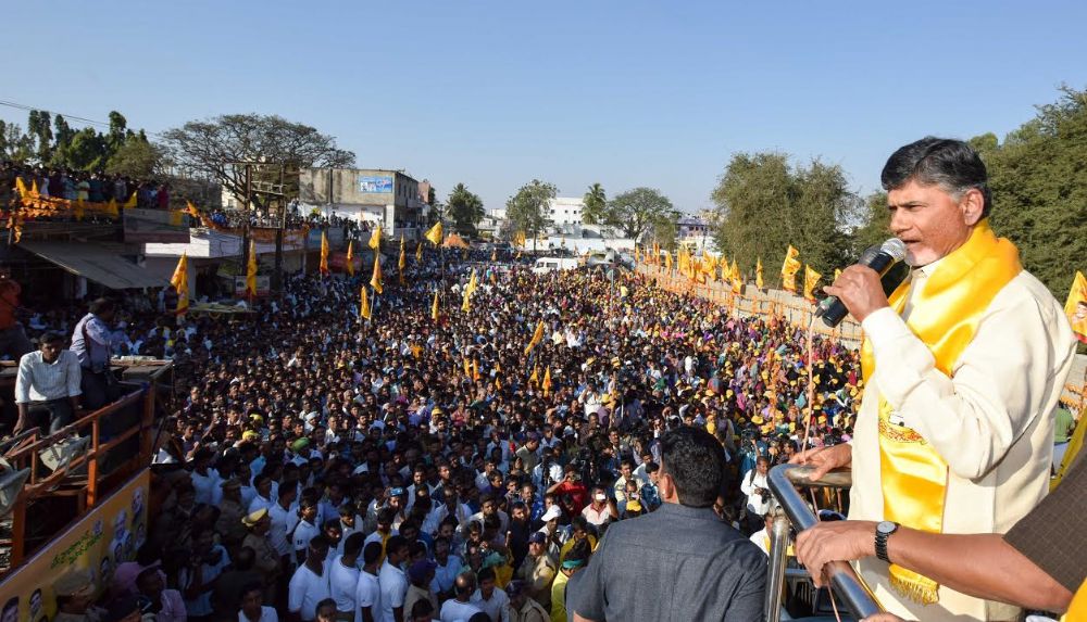 TDP National President N. Chandrababu Naidu during TDP - BJP GHMC Elections Campaign in Hyderabad on 29th January 2016.
