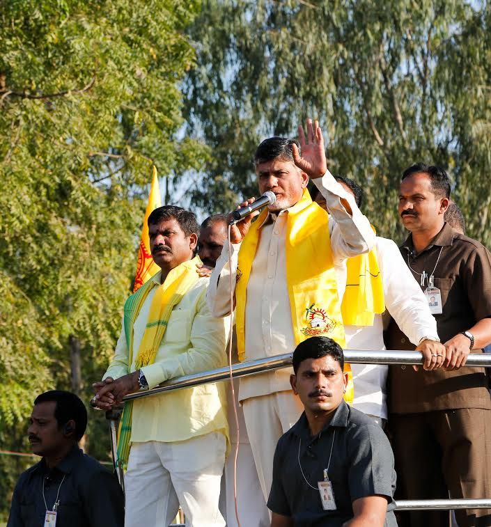 TDP National President N. Chandrababu Naidu during TDP - BJP GHMC Elections Campaign in Hyderabad on 29th January 2016.
