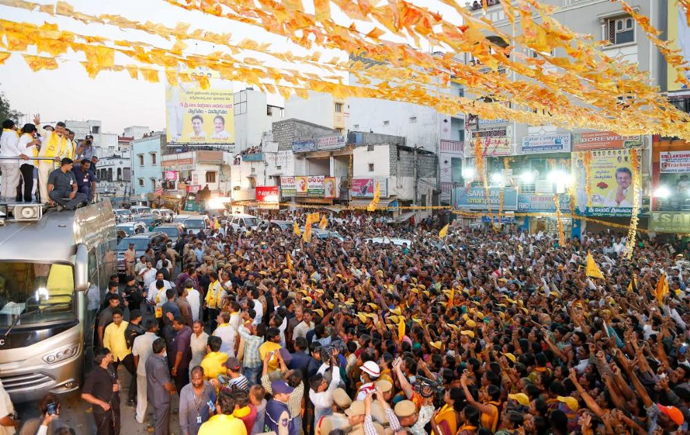TDP National President N. Chandrababu Naidu during TDP - BJP GHMC Elections Campaign in Hyderabad on 29th January 2016.