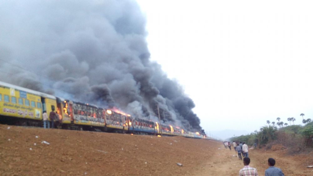 The Kapu Ikya Garjana held in Tuni in East Godavari district on Sunday, demanding inclusion of Kapu community in BC list, turned violent with protesters setting ablaze coaches of Ratnachal Express, a police station and other properties.