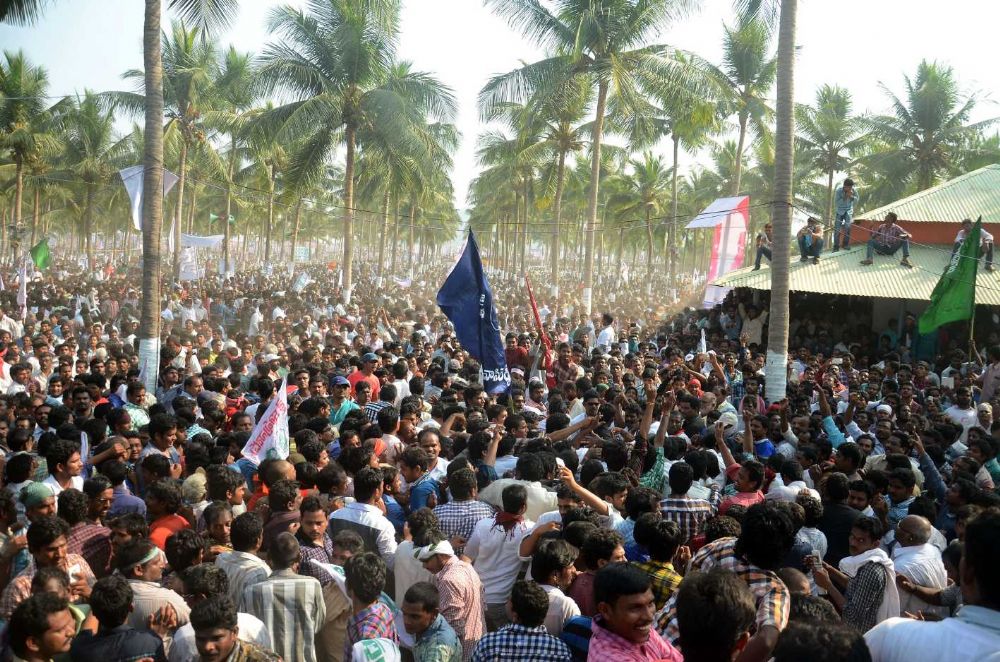 The Kapu Garjana in Tuni has turned violent. Cutting across parties many kapus attended the meeting and it was a sea of people at Tuni on 31st January 2016.