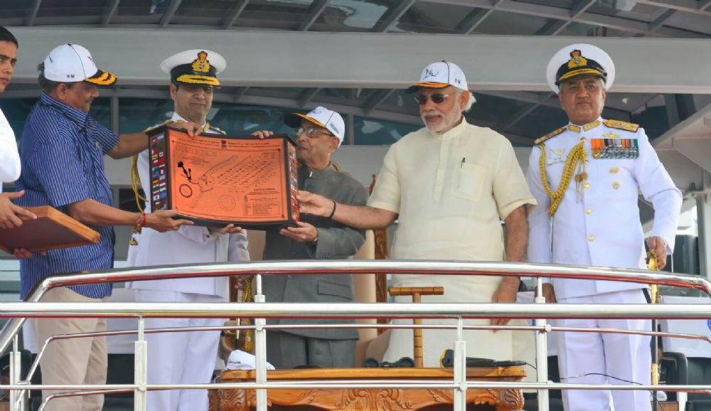 President and the Supreme Commander of the armed forces of India, Pranab Mukherjee, reviewed the Fleet comprising naval warships from Indian as well as frontline foreign navies on 6th February 2016.