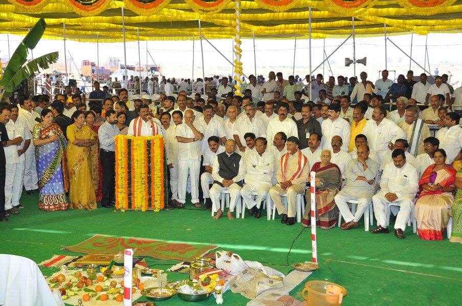Andhra Pradesh Chief Minister N.Chandra Babu Naidu laying foundation stone for Temporary Secretariat Building at Velagapudi on 17th February 2016.