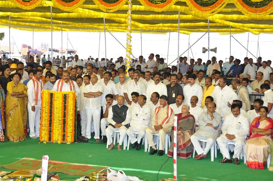 Andhra Pradesh Chief Minister N.Chandra Babu Naidu laying foundation stone for Temporary Secretariat Building at Velagapudi on 17th February 2016.