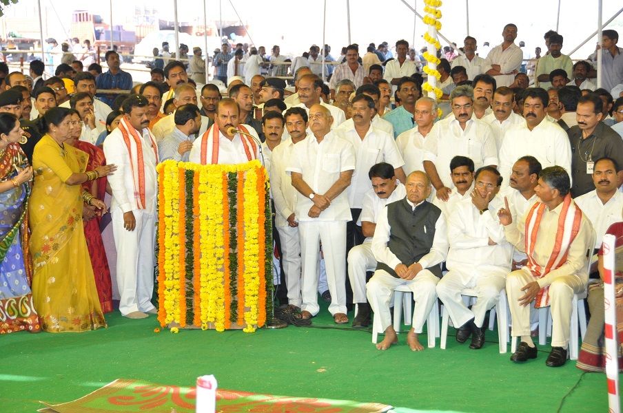 Andhra Pradesh Chief Minister N.Chandra Babu Naidu laying foundation stone for Temporary Secretariat Building at Velagapudi on 17th February 2016.
