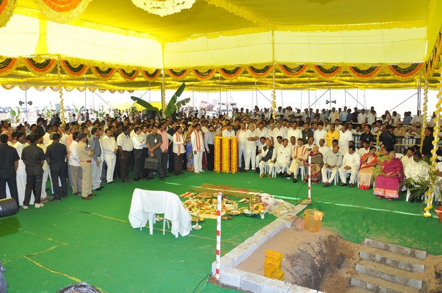 Andhra Pradesh Chief Minister N.Chandra Babu Naidu laying foundation stone for Temporary Secretariat Building at Velagapudi on 17th February 2016.