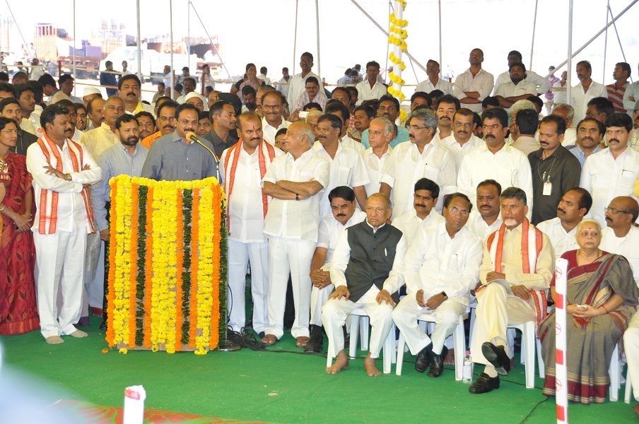 Andhra Pradesh Chief Minister N.Chandra Babu Naidu laying foundation stone for Temporary Secretariat Building at Velagapudi on 17th February 2016.