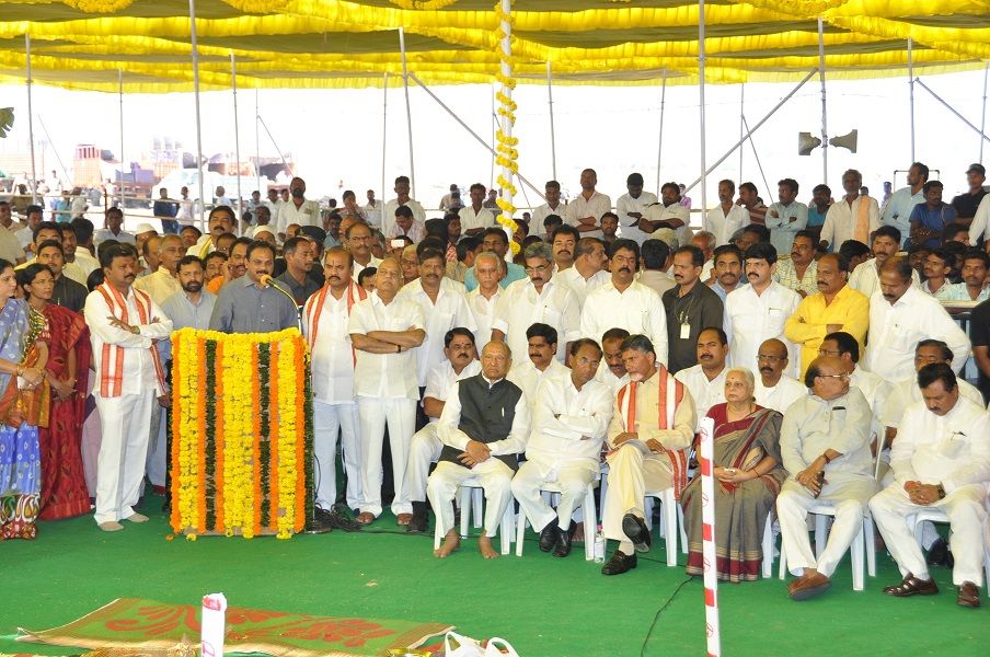Andhra Pradesh Chief Minister N.Chandra Babu Naidu laying foundation stone for Temporary Secretariat Building at Velagapudi on 17th February 2016.