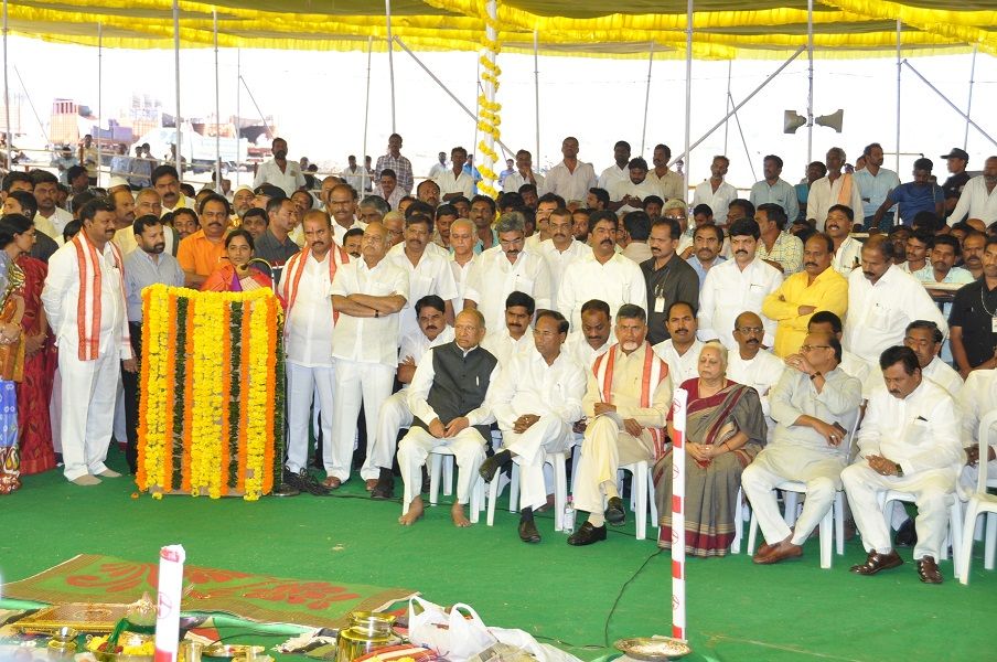 Andhra Pradesh Chief Minister N.Chandra Babu Naidu laying foundation stone for Temporary Secretariat Building at Velagapudi on 17th February 2016.