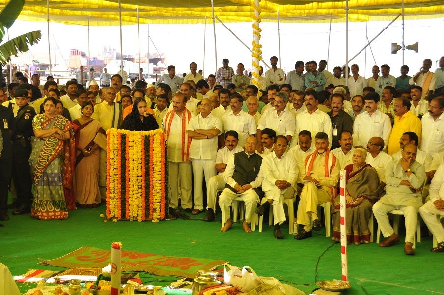 Andhra Pradesh Chief Minister N.Chandra Babu Naidu laying foundation stone for Temporary Secretariat Building at Velagapudi on 17th February 2016.