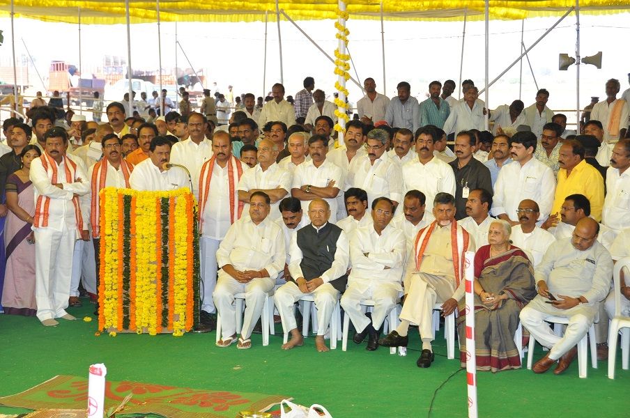 Andhra Pradesh Chief Minister N.Chandra Babu Naidu laying foundation stone for Temporary Secretariat Building at Velagapudi on 17th February 2016.