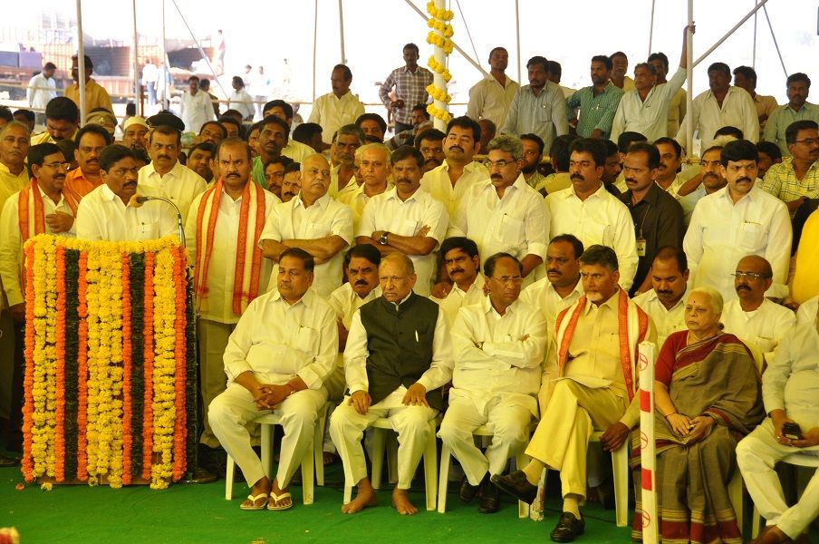 Andhra Pradesh Chief Minister N.Chandra Babu Naidu laying foundation stone for Temporary Secretariat Building at Velagapudi on 17th February 2016.