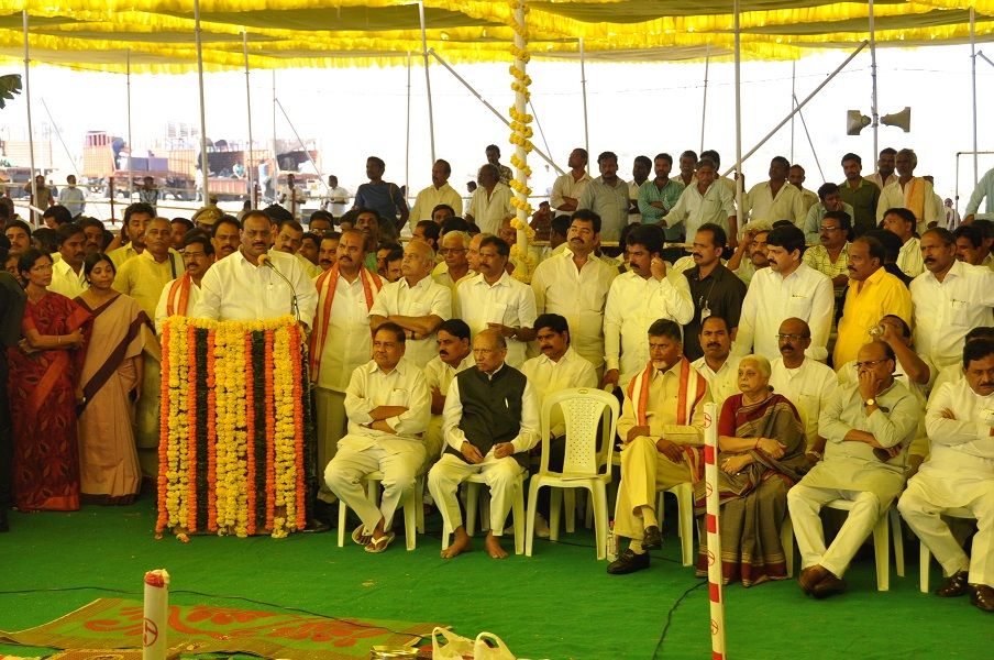 Andhra Pradesh Chief Minister N.Chandra Babu Naidu laying foundation stone for Temporary Secretariat Building at Velagapudi on 17th February 2016.