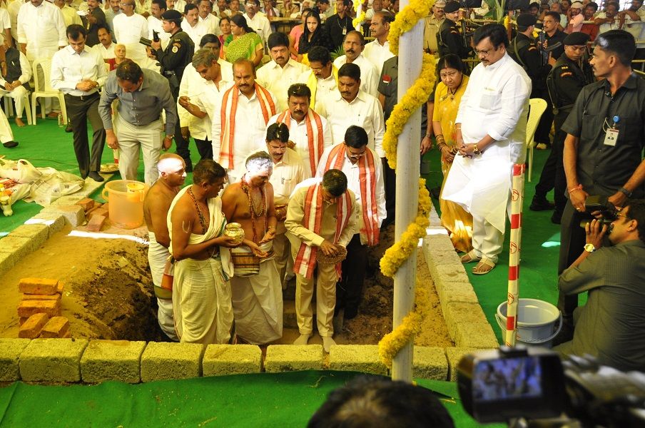Andhra Pradesh Chief Minister N.Chandra Babu Naidu laying foundation stone for Temporary Secretariat Building at Velagapudi on 17th February 2016.