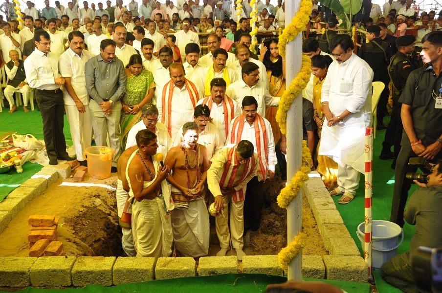 Andhra Pradesh Chief Minister N.Chandra Babu Naidu laying foundation stone for Temporary Secretariat Building at Velagapudi on 17th February 2016.