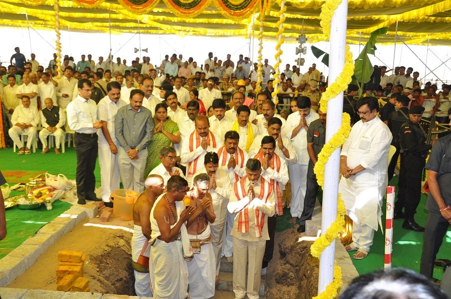 Andhra Pradesh Chief Minister N.Chandra Babu Naidu laying foundation stone for Temporary Secretariat Building at Velagapudi on 17th February 2016.