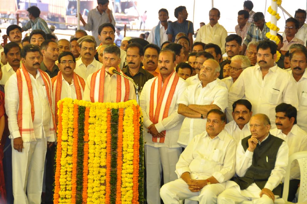 Andhra Pradesh Chief Minister N.Chandra Babu Naidu laying foundation stone for Temporary Secretariat Building at Velagapudi on 17th February 2016.