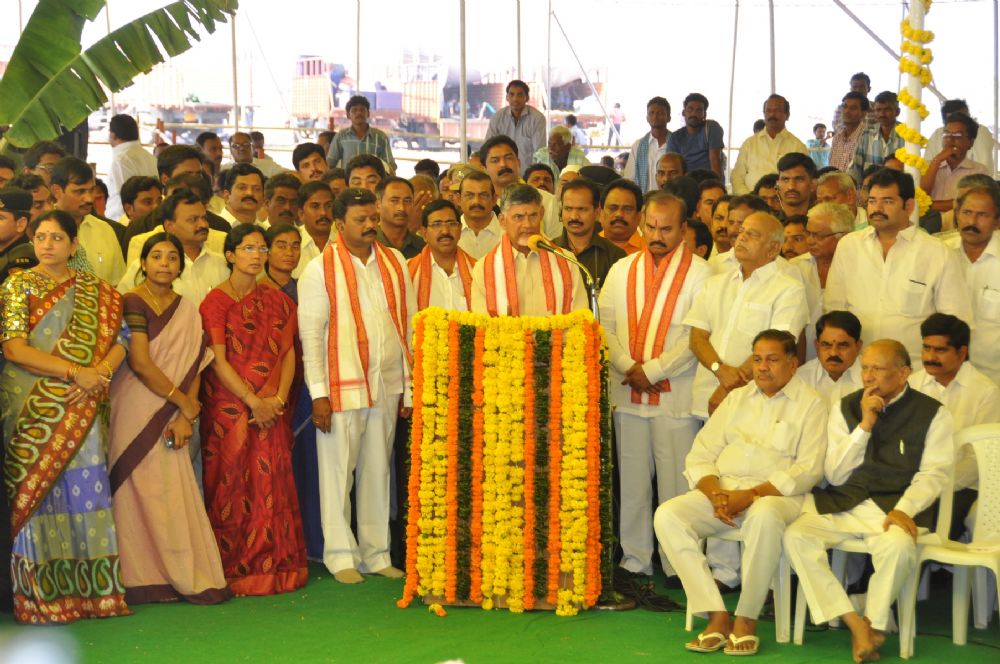 Andhra Pradesh Chief Minister N.Chandra Babu Naidu laying foundation stone for Temporary Secretariat Building at Velagapudi on 17th February 2016.
