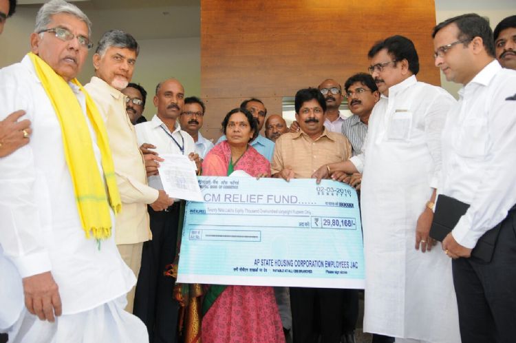 Andhra Pradesh State Housing Corporation Employees donated Two Day Salary to the CM Relief Fund for the construction of Capital Amaravathi in the presence of Chief Minister N. Chandrababu Naidu on 2nd March 2016