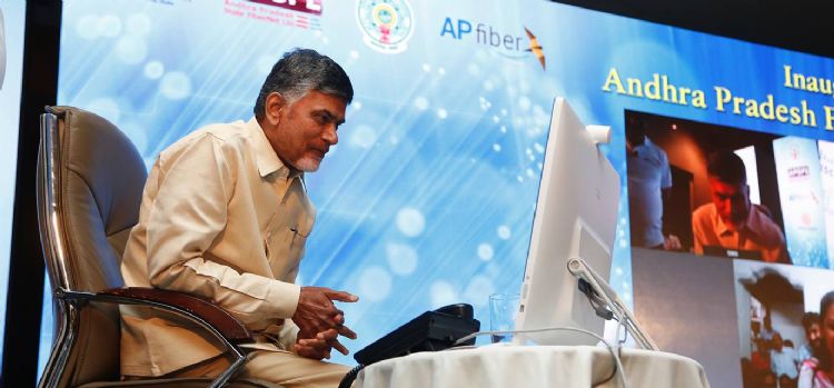 Andhra Pradesh Chief Minister N. Chandrababu Naidu interacting with the people through AP Fiber Network launched on 26th March 2016.