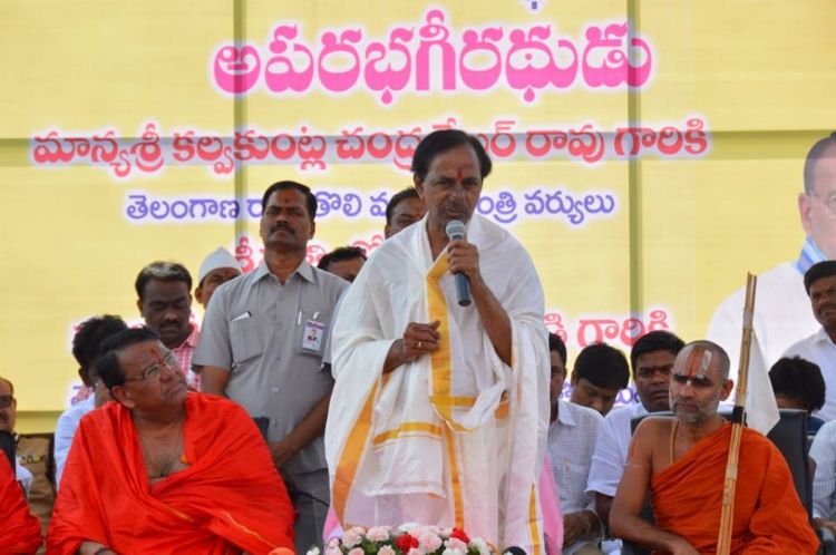 TelanganaChief Minister K. Chandrashekar Rao offered prayers to presiding deity of Venkateshwara Swamy at Timmapur Gutta in Nizamabad District on Saturday. Later he addressed a public meeting.