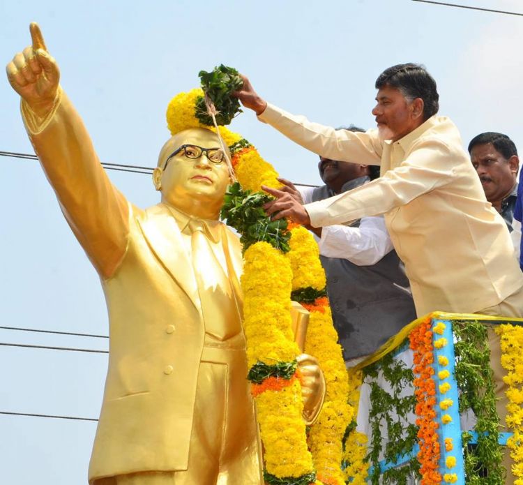 Andhra Pradesh Chief Minister N. Chandrababu Naidu garlanded the statue of B.R. Ambedkar in Vijayawada on account of Ambedkar's 125th birth Anniversary on Thursday.
