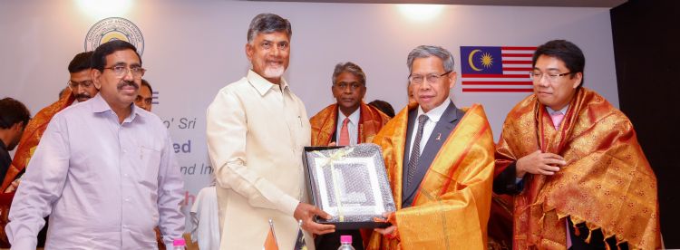 International Trade and Industry Minister Dato Sei Mustapa Mohamed and his team from Malaysia interacting with Chief Minister N.Chandrababu Naidu as a part of trade and investment promotion mission in Vijayawada on 3rd May 2016.