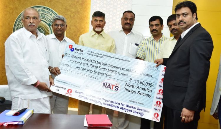 NATS President SriMohana Krishna preseneted a Cheque of Rs. 10,60,000 to Nagireddy father of Pavan kumar who injured in car crash at Madison, USA on 2nd March 2016. For his treatment NATS helped to Pavan Kumar and presented this cheque in the presence of Chief Minister N. Chandrababu Naidu at CMO Office in Vijayawada on 8th May 2016.