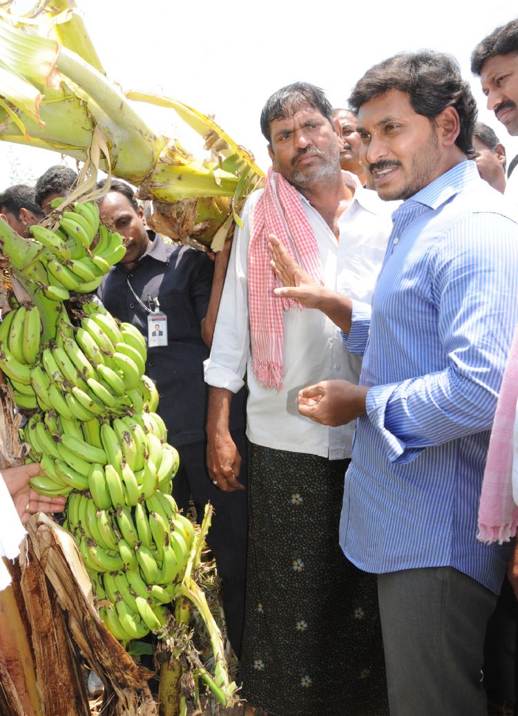 YSRCP Chief YS Jagan Mohan Reddy seeing the damaged plantations in Pulivendula constituency on 9th May 2016.
