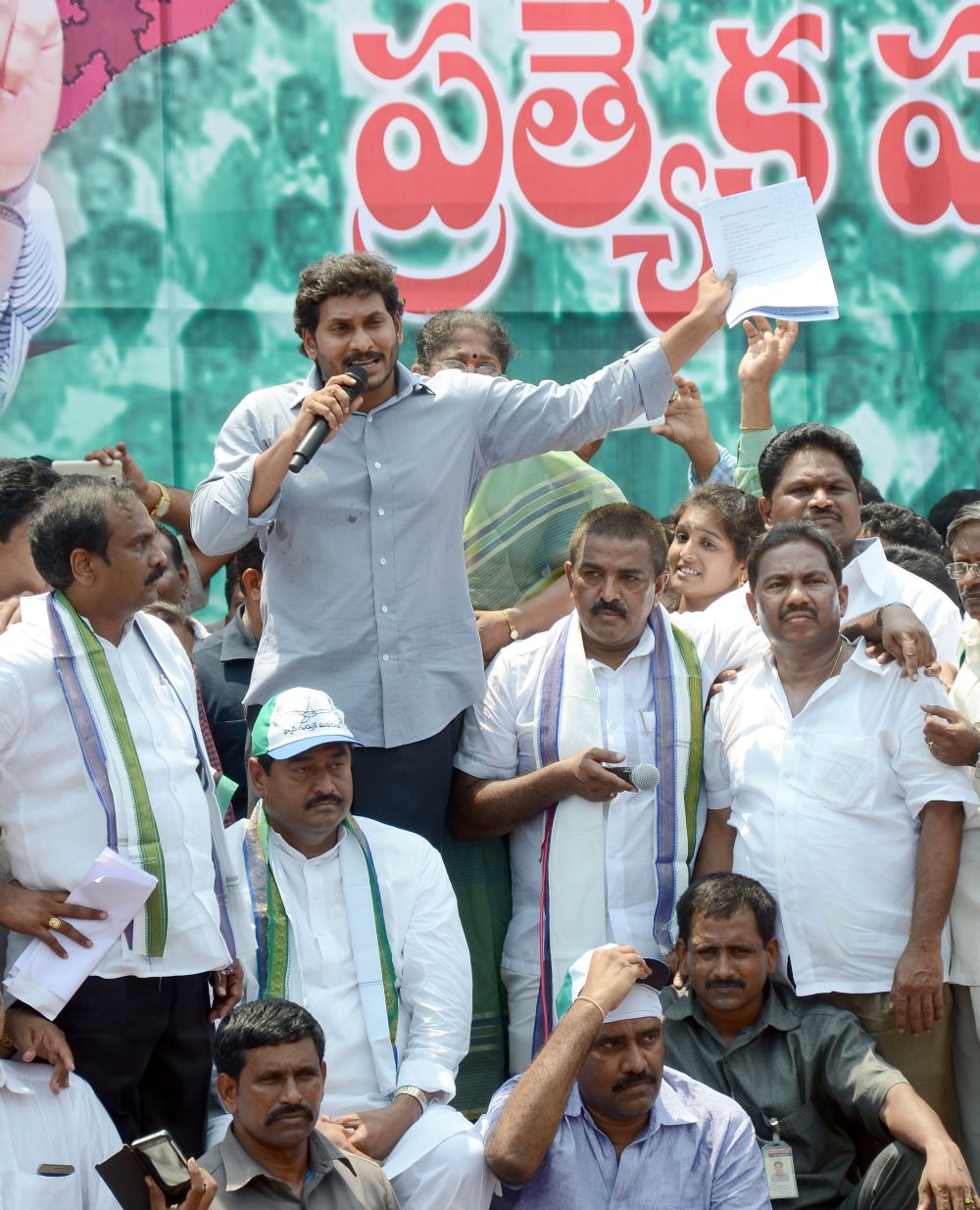 YSRCP Chief YS Jagan Mohan Reddy staged a dharna seeking special status to Andhra Pradesh in front of the Collectorate in Kakinada to on 10th May 2016.